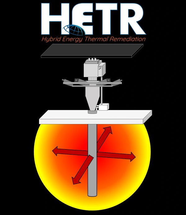HETR™ is ERG’s patented hybrid-energy thermal conduction heating system, designed to deliver high-temperature remediation with substantially improved efficiency, sustainability, and control. The system applies multiform energy—combining convective, conductive, and radiative heat transfer—to achieve stable heater–formation interface temperatures exceeding 500 °C and sustainable heat fluxes of ~400–550 W per linear foot, enabling subsurface targets from 35 °C to over 400 °C at well spacings of 8–17 ft. Each HETR™ well also generates 100–500 W of renewable energy 24/7 through integrated thermoelectric modules, which can be supplemented with auxiliary solar to further offset power demand. The platform accommodates variable reliance on combustion or electric heating, grid-connected or off-grid operation, and precise longitudinal or lateral heat distribution. Together, these capabilities reduce carbon footprint, increase energy utilization efficiency, and overcome infrastructure limitations that constrain traditional ISTR systems.